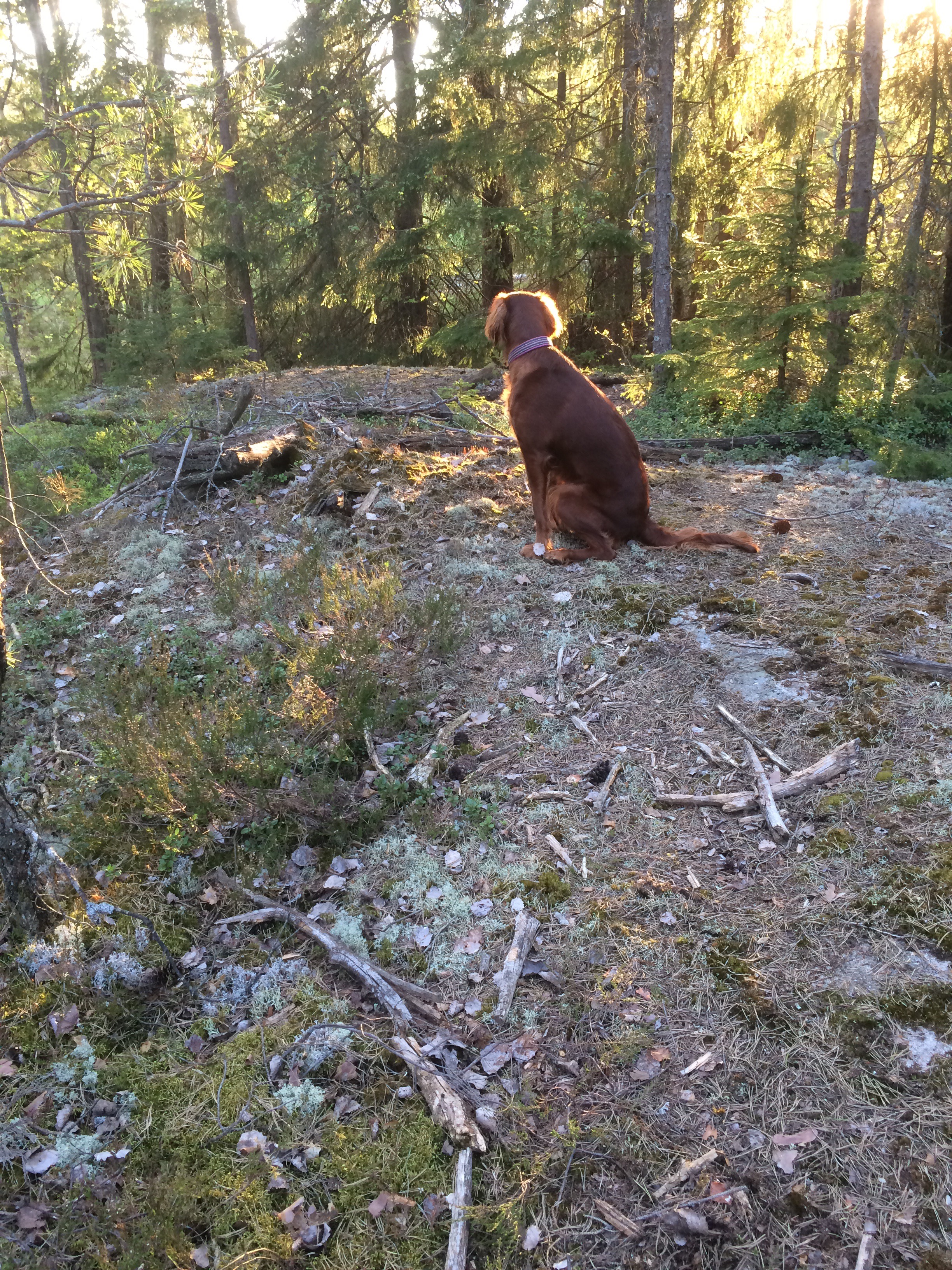 Det eneste en kan høre i skogen er fuglekvitter og en hund i galopp. Plutselig kan det høres en fløyte som sier: «Tvi tvi!» Og ut av skogen kommer det en hund løpende. Det er som om GPS’en er satt på autopilot, for hunden har stø kurs mot sin eier. Vel fremme, høres det en rompe som treffer bakken. Hunden har satt seg, for dette har den lært at er riktig.