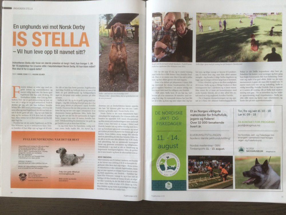 Nå er det ingen vei tilbake Skrevet av Team Selmer den juni 27, 2016 Da var endelig Fuglehunden’s utgave nr.4 kommet. Og det ble en fin reportasje om vår vei mot Derbyet! Dette blir morro!! Del dette: Klikk for å dele på X(åpnes i en ny fane) X Klikk for å dele på Facebook(åpnes i en ny fane) Facebook Lik Laster inn... Relatert