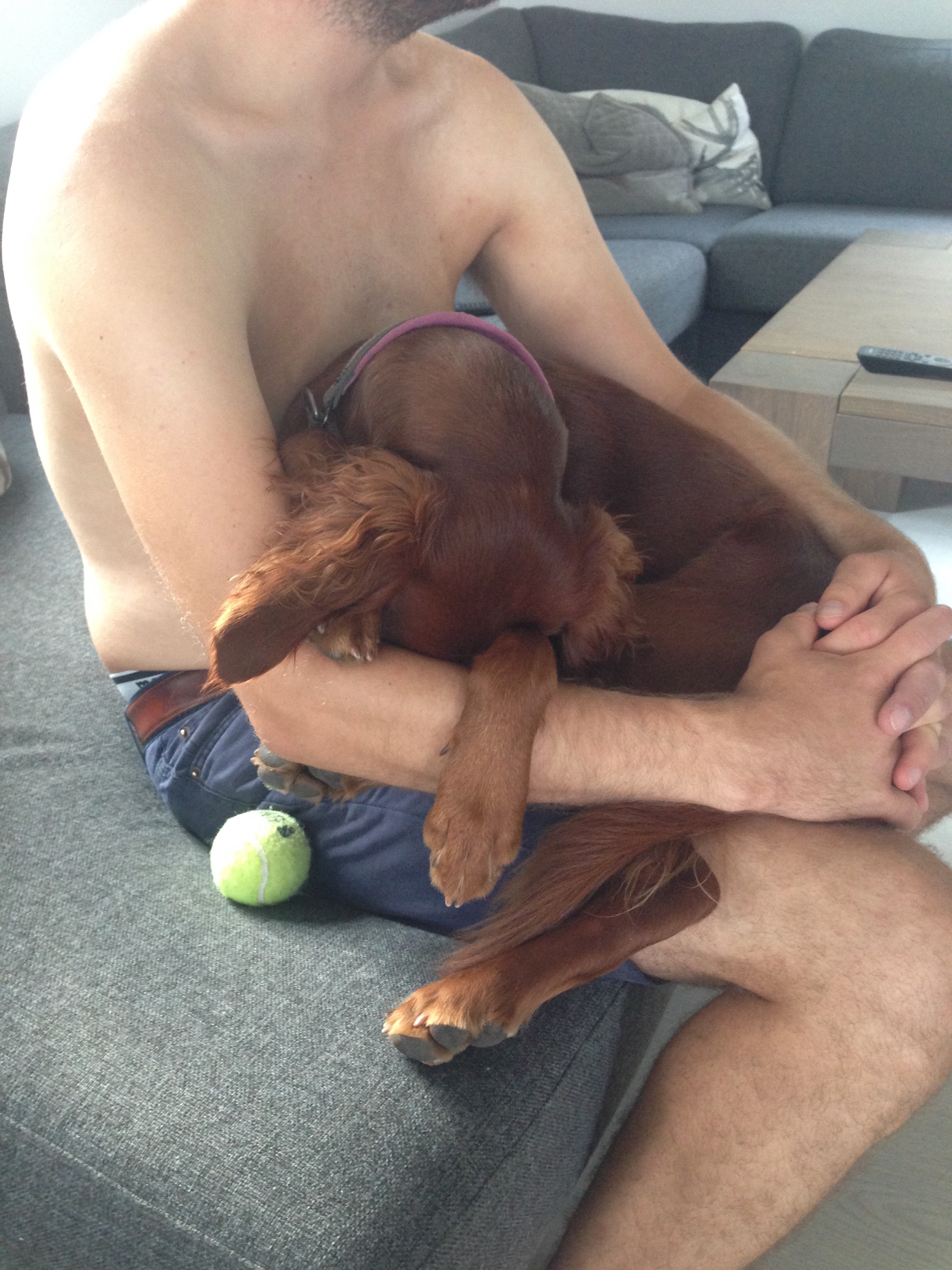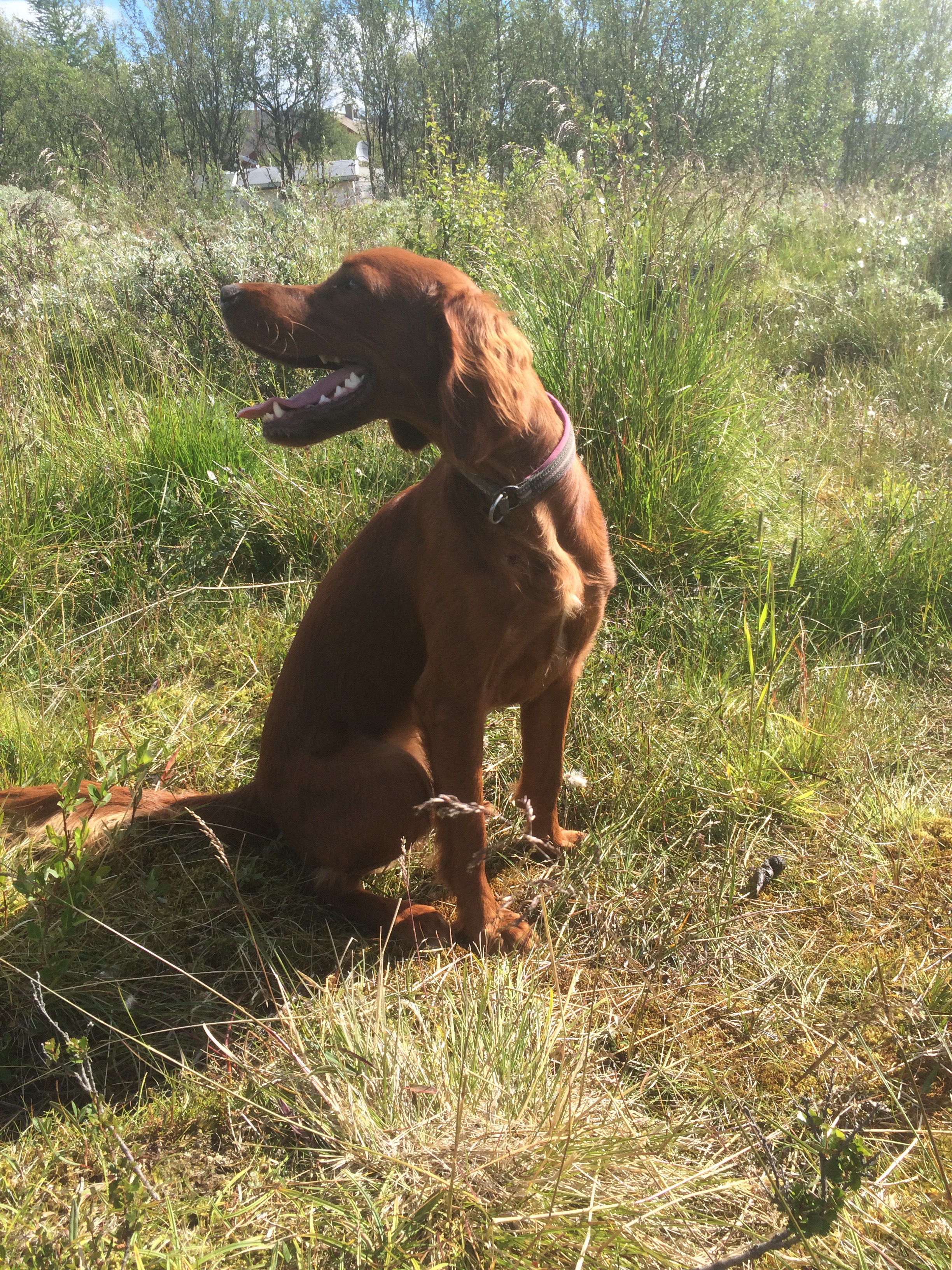 Vel inne i hundegården ble jeg møtt av 7-8 irske settere. Og Stella viste alle sine nye venner, at jeg er hennes mester. Jeg fikk utallige kyss, mens hun krøp opp i fanget mitt. Dette hadde hun tydeligvis savnet.