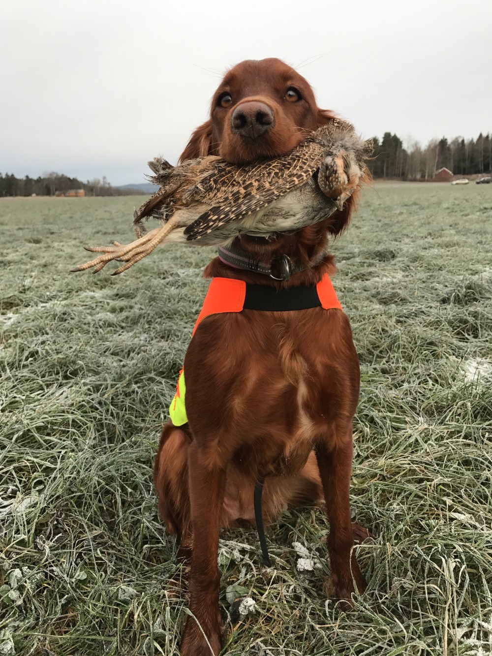 Vi var kommet til den første helgen i desember. Optimismen var der og jeg hadde tro på at dette skulle bli en meget god dag. Vi møtte opp på Kalnes for å trene med Østfold fuglehundklub. Det blir delt opp i to grupper eller partier, Et parti for unghund denne her ble det satt ut Raphøns. Og et parti for de som vil trene på jakt. Forventningene til at det skulle bli en fin dag var tilstede.jeg håpet på at Stella skulle få en positiv opplevelse, noe jeg i og for seg tror hun fikk. Da det ble vår tur blir sluppet og hun jakter på i full fart. I og med at fuglen var ny utsatt, det var lite vind og det var uerfarende hunder. Ble det ikke mange fuglearbeid. Stella oppdaget brått en fugl som hadde slått seg ned midt ute på jordet. Da fuglen begynte å springe var ikke Stella vanskelig å be, hun ble med på løpeturen. Og jeg stod igjen som en skamfull hundeeier. Følelsen av å ikke ha kontroll på hunden når den er i fugl er ikke veldig kul. Jeg fikk kalt inn henne, da hun kom inn til meg hadde hun rapphøna i munnen. Apport treningen har i hvert fall fungert. Nå blir det mer terping enn noen sinne, og så ser det ut som om treningsleir blir mer aktuelt. Heldigvis kjenner jeg en meget dyktig hundetrener som har muligheten til å trene henne på fjellet nå i vinter. Avgjørelsen kommer jeg til å ta om ikke altfor lenge.