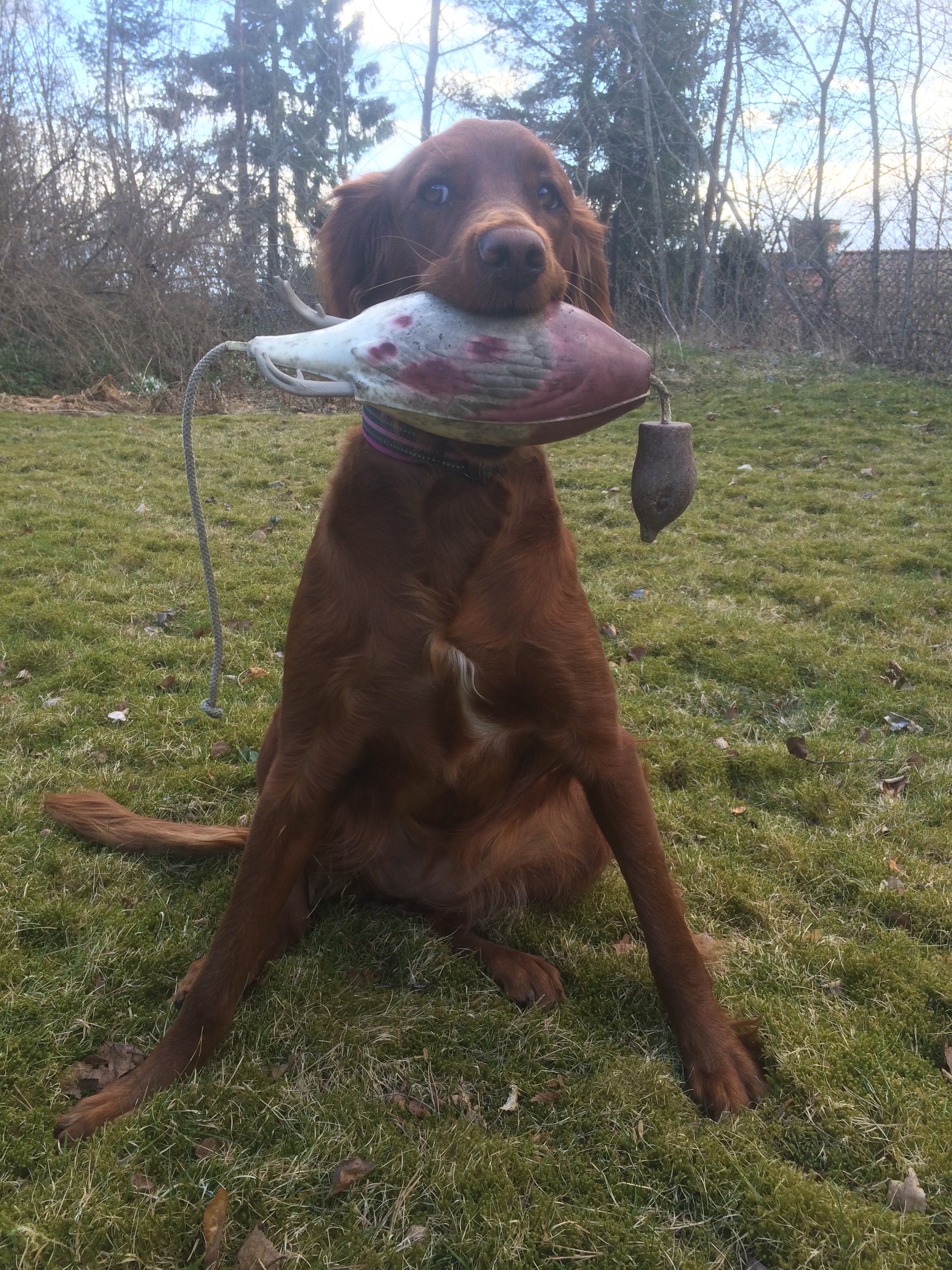 Da Stella var 7 mnd, gammel apporterte hun villig. Så jeg vet at hun har det i seg, nå må vi bare finne tilbake til det igjen.
