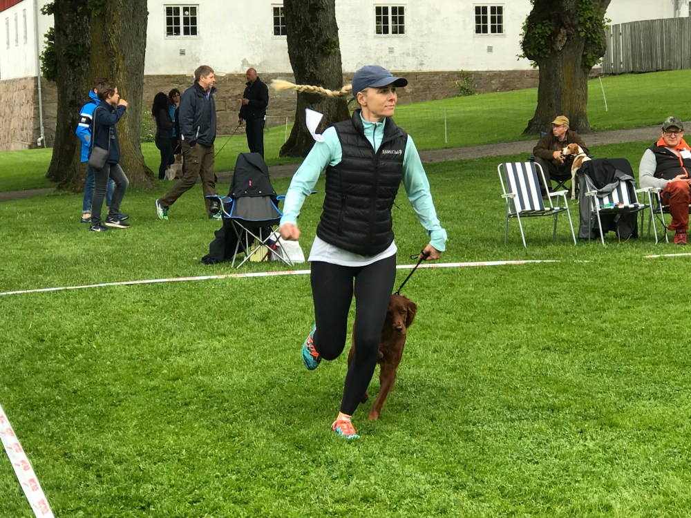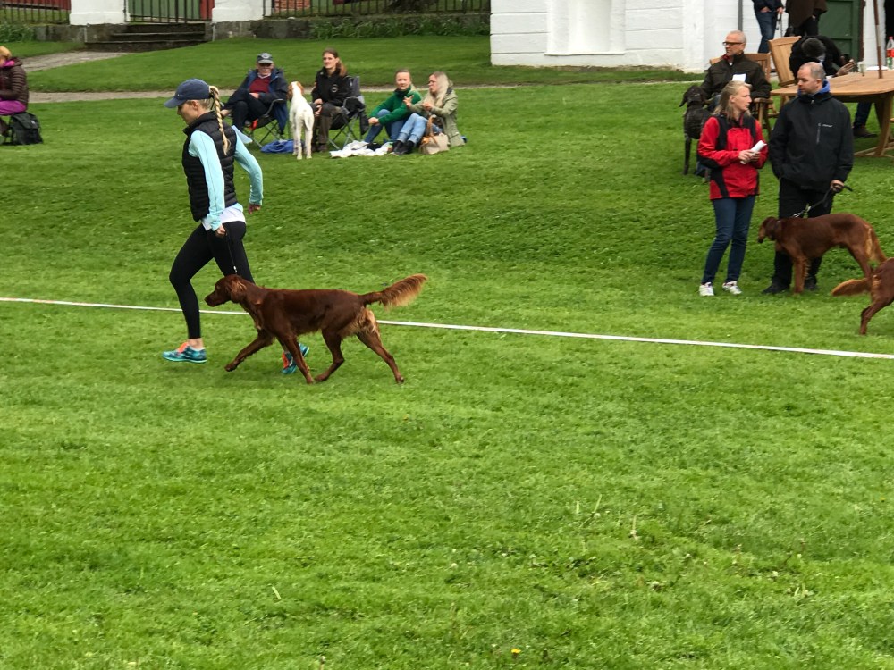 Siden Ida er høygravid og jeg har ett kne som ikke spiller på lag med meg om dagen. Kunne ingen av oss føre henne i ringen denne dagen. Heldigvis har Ida en søster som et sporty som stiller opp. Anne er også hundemenneske, men har ingen erfaring fra utstillingsringen selv. Dette kunne man ikke se, og erfarende utstiller skrøt av måten hun førte på.