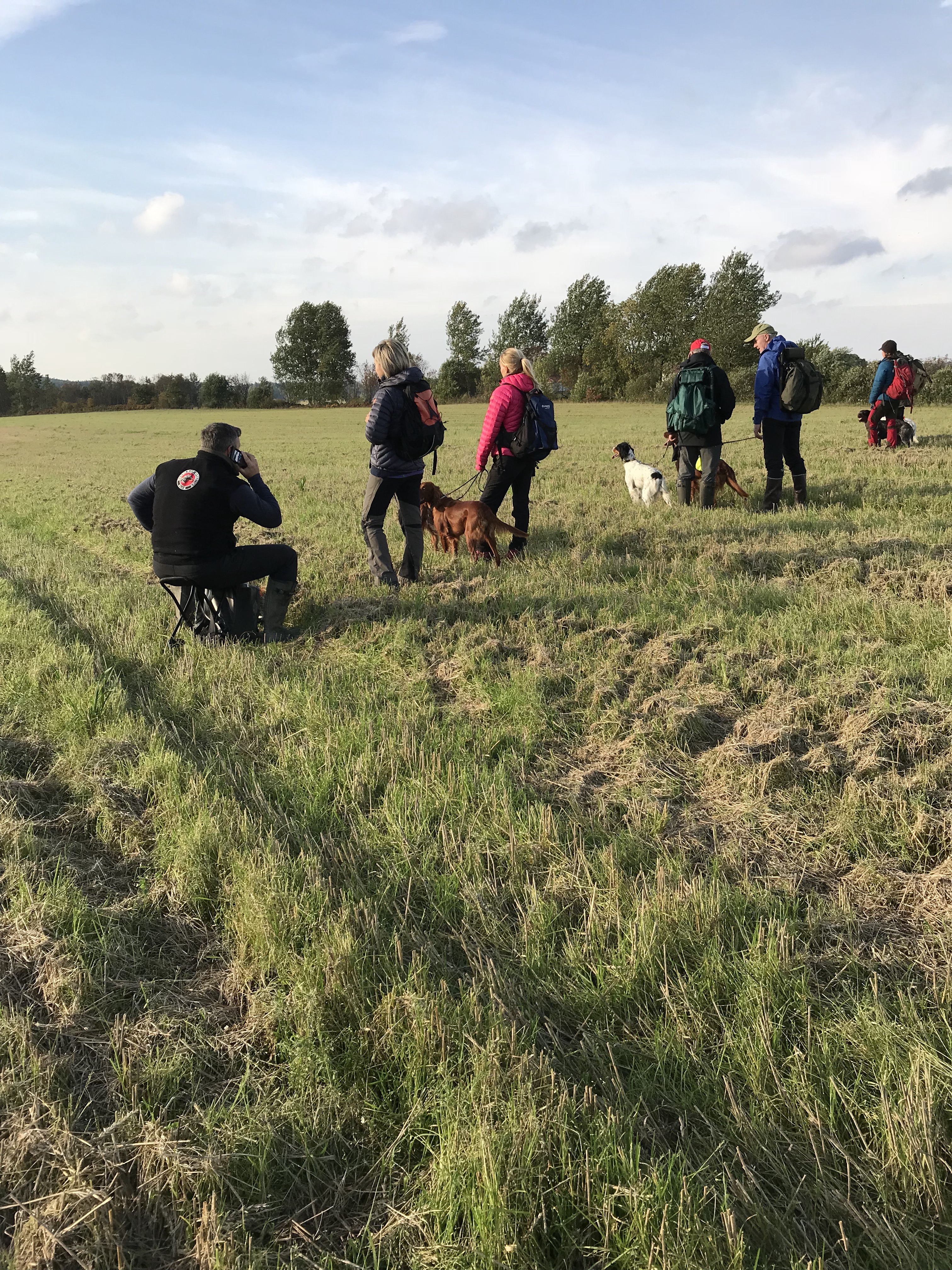 Søndag var det meldt regn og jeg håpet det skulle la vente på seg lengst mulig. Stella åpnet dagen veldig bra og dommer sa hun var en prima jakthund. Jeg synes hun gikk bedre enn de foregående dagene. Rett før hennes tredje slipp kom regnet, og Stella begynte å merke det. Det ble med 3 slipp denne dagen og det er jeg godt fornøyd med.