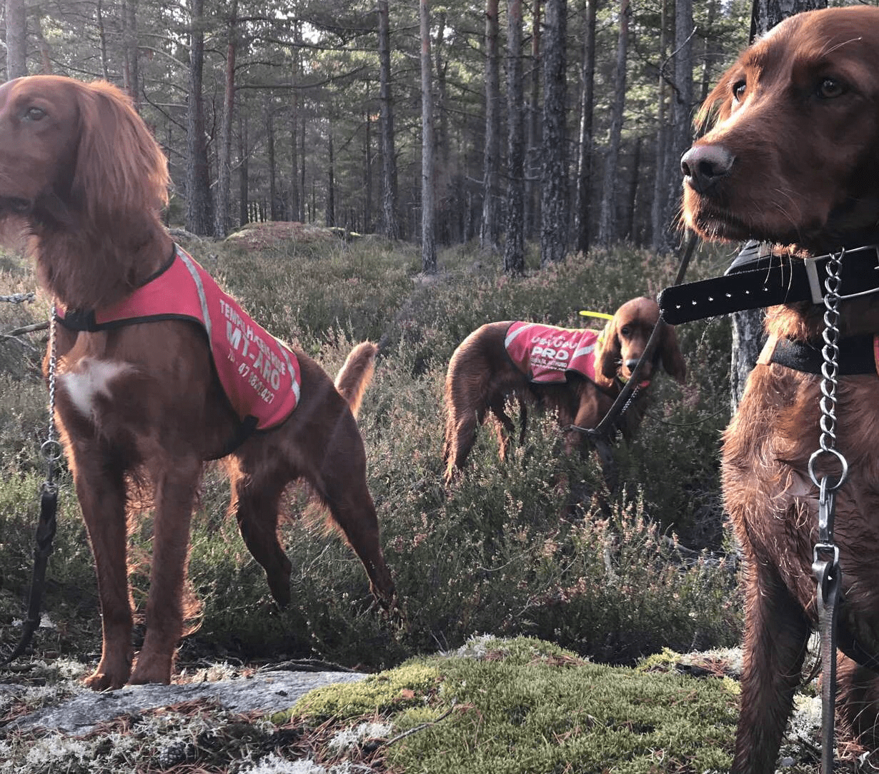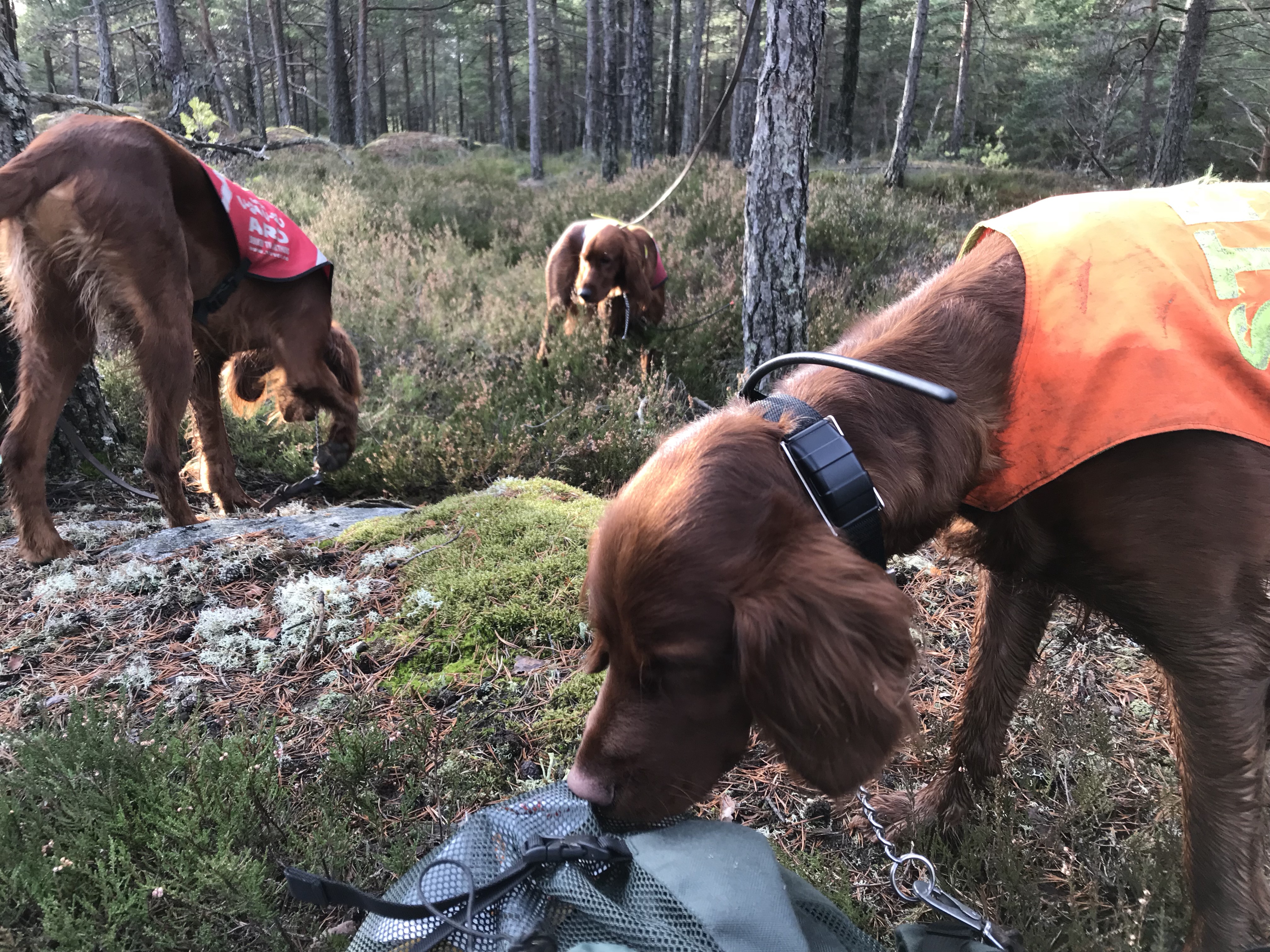 Det ble nok en herlig dag i Østfolds skoger i går. Sola skinte og alt lå til rette for Stella og meg. Denne gangen dro vi ikke ut alene, men sammen med klubbkamerat i Østfold Fuglehundklubb og irsk setter entusiast Lars Erik Gutubakken. Lars Erik har 2 flotte hannhunder, Aro og Pro. Pro har fått 2 flotte premieringer i UK på lavland denne høsten, så dette lovet bra.