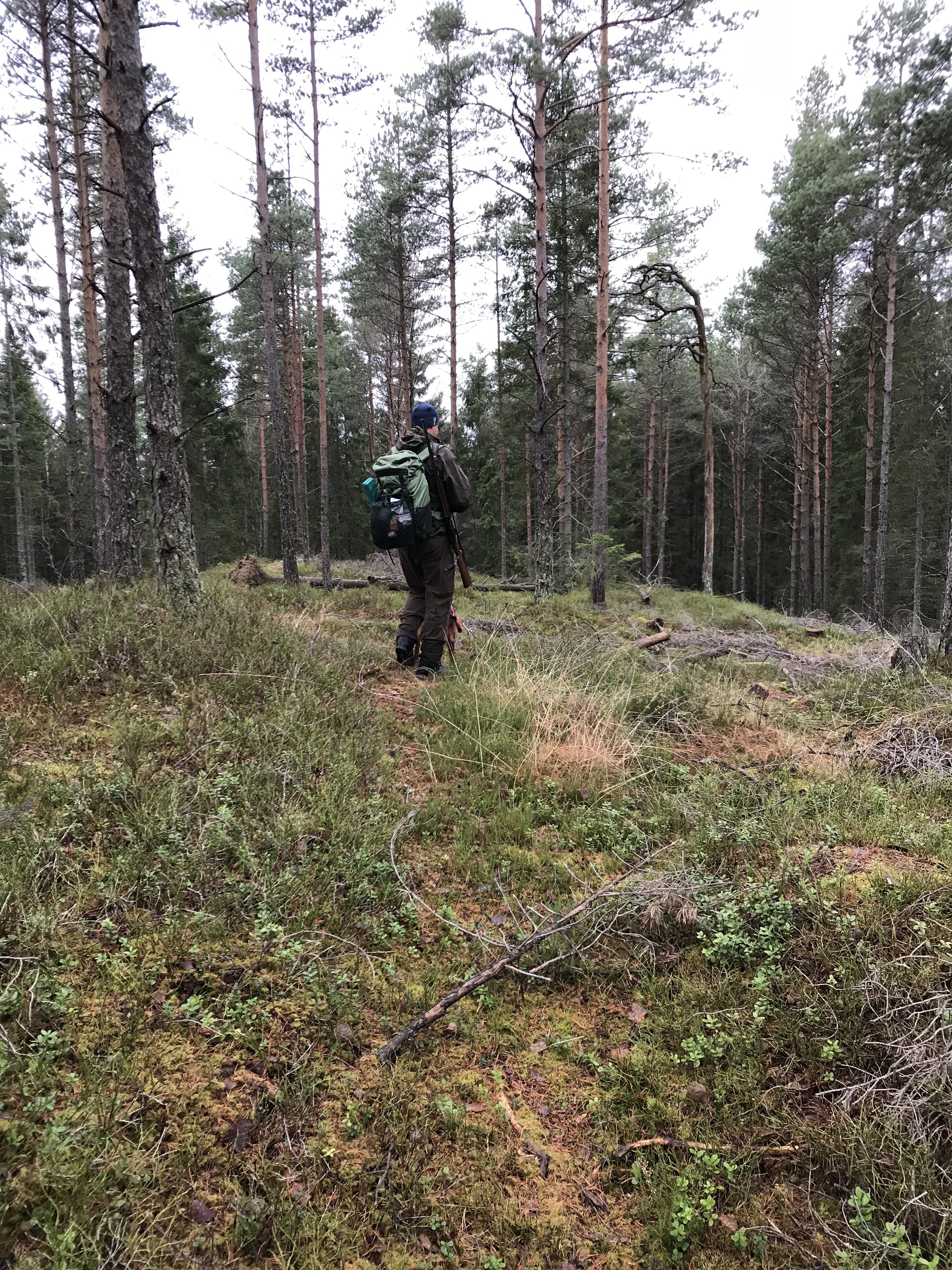 Dette ble en dag hvor vi ikke fikk noen fugl på vingene. Det eneste vi så var en masse småfugl og et elgkadaver. Men vi møtte på en annen jeger som kunne fortelle at han hadde godt opp en tiur tidligere på dagen. Så det ga oss et håp om at hundene skulle få litt fugl i nesa.