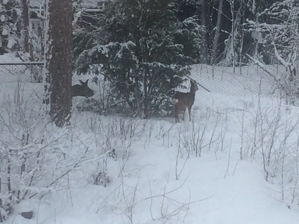 Dette bilde sendte pappa meg for ett par dager siden. Bilde er tatt fra stuevinduet og her kan vi tydelig se rådyrene i hagen.