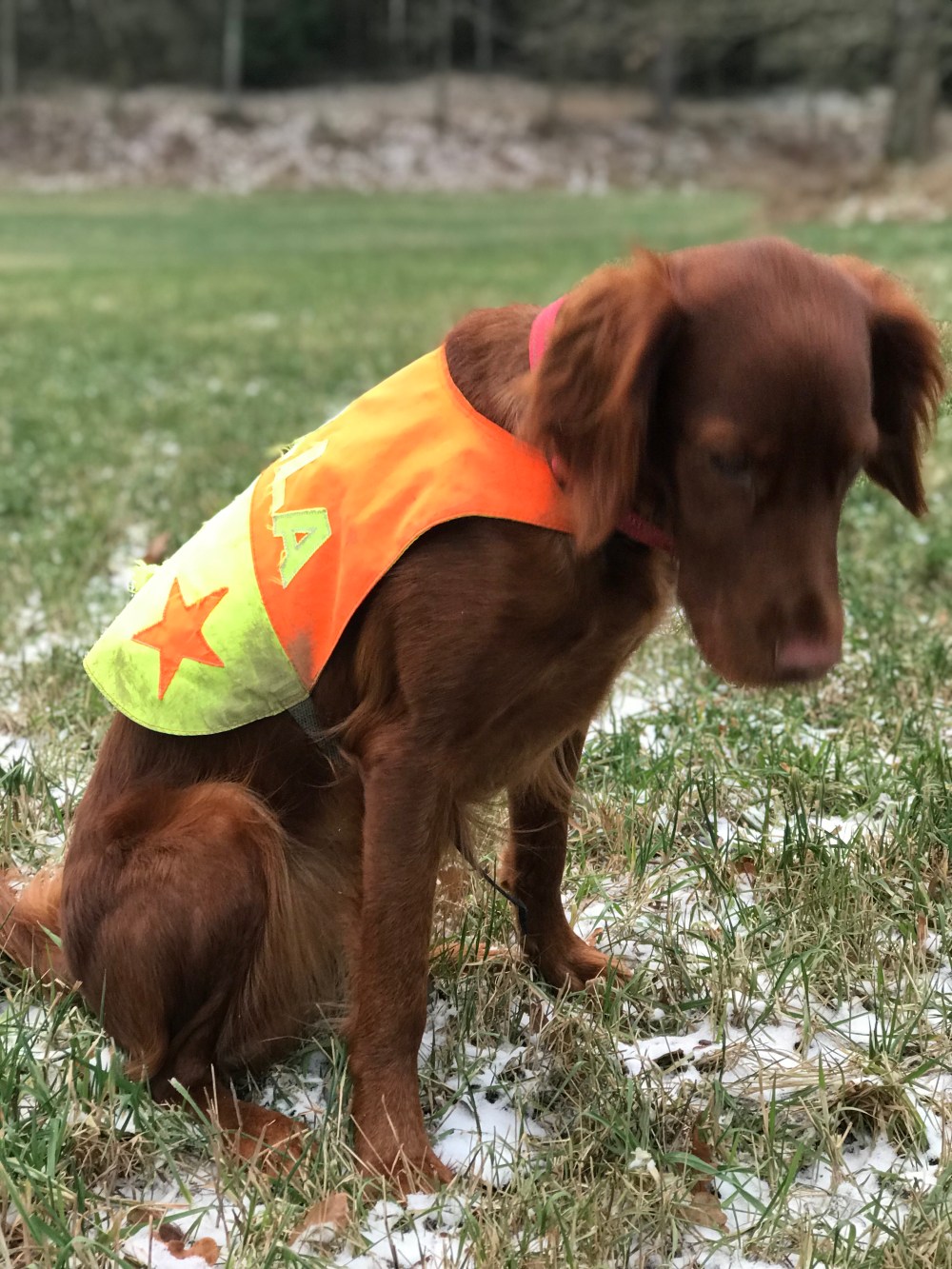 Bittelille juleaften var Stella endelig tilbake til familien, og gjensynsgleden var stor. Selv om jeg fremdeles ser veldig dårlig, er det nok til å kunne gå turer litt lengre turer med henne. Og med markringsdekken på ryggen til Stella har jeg mulighet til se henne litt bedre.